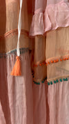 Stunning flowing cover up tunic with layers and colour blocking. Detail designs throughout with pompoms, tassels, and ribbon. Made in India.