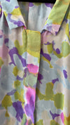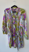 Twenty8Twelve, by Sienna Miller, adjustable long sleeve jumper with clips on the outside of the sleeve to adjust length. Built in belt that pulls in with drawstring. Standard blouse top with collar. Short shorts.