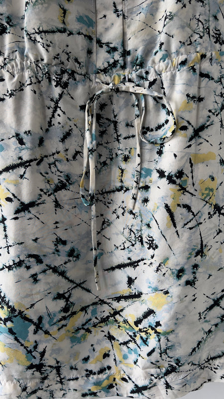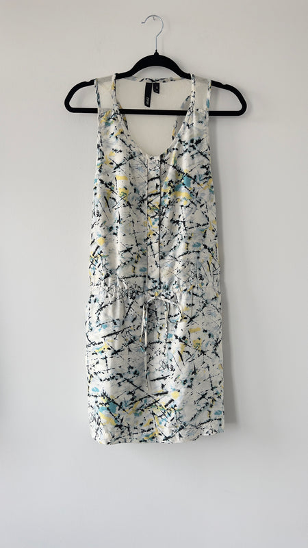 EDUN Silk Pattern Drop Waist Creme Dress with Mesh Back Size Medium