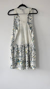 EDUN Silk Pattern Drop Waist Creme Dress with Mesh Back Size Medium