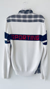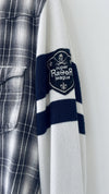 Streetwear from Italy. 90s grunge throwback. Unique sweater shirt jacket combo with details: skull button, patch, plaid on front, knitted. Stand out in a crowd. Unisex. Designed in Italy.